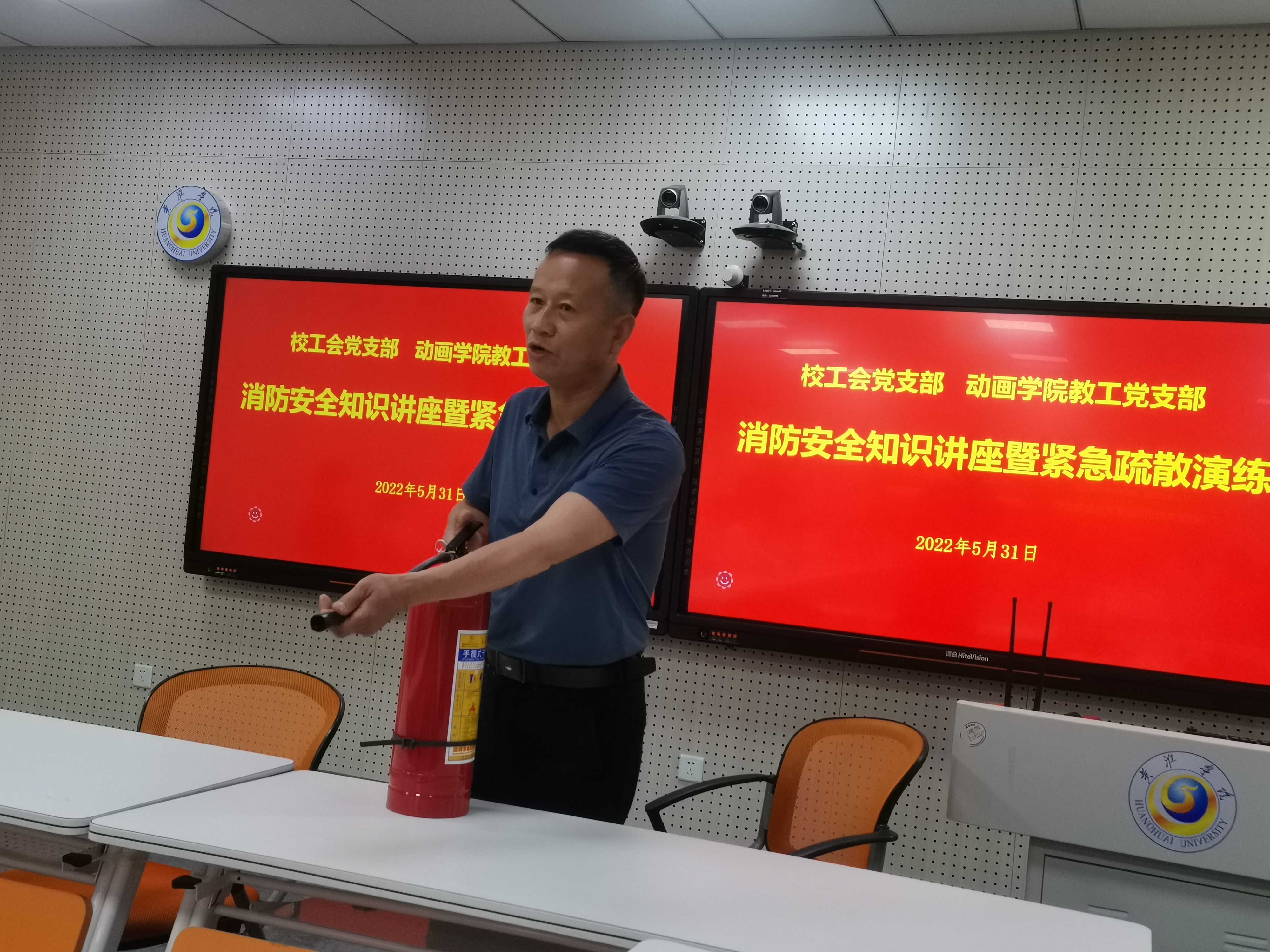 签约仪式结束后,共建“友好党支部”开展首次活动。活动围绕学习贯彻习近平总书记关于防灾减灾救灾工作的重要论述和指示批示精神,聚焦郑州“7.20”特大暴雨灾害追责问责案件以案促改工作,邀请保卫处副处长张拥军作了消防安全知识讲座。张拥军通过一个个真实的案例,深入浅出地讲解了消防安全的重要性,全面介绍了高校日常学习生活中应注意的消防安全细节、如何扑救初期火灾以及火灾中如何自救、逃生等知识,并对消防器材的正确使用做了细致的讲解和演示。讲座过程中,同志们认真聆听,对高校消防安全的重要性有了更深刻的认识,应急突变能力有了进一步的掌握和提升。