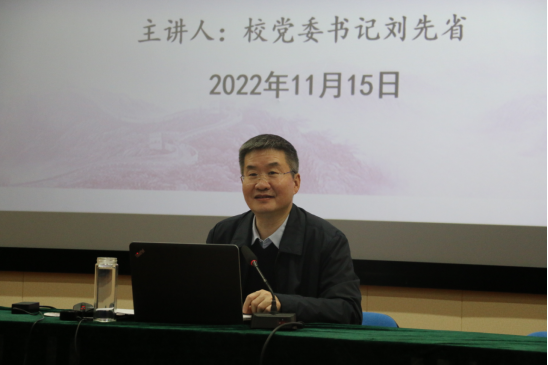为深入学习宣传贯彻党的二十大精神,引领带动全校师生把思想行动统一到中央的决策部署上来,近日,校党委书记刘先省到国际教育学院、马克思主义学院,为师生宣讲党的二十大精神。