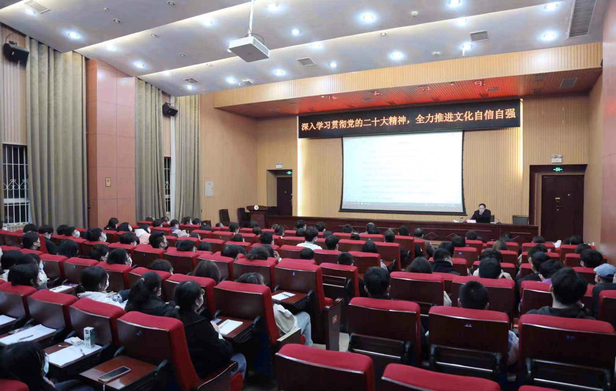 刘彦明指出,全面建设社会主义文化强国是全面建设社会主义现代化强国的重要组成部分,要全面把握推进文化自信自强的总要求、总任务,深刻认识学校在新时代新征程的新使命,拉高学校使命愿景,强化人才引领驱动,坚持文化自信自强、支撑高质量发展,坚持创造性转化、创新性发展,坚持开放包容、文明交流互鉴。