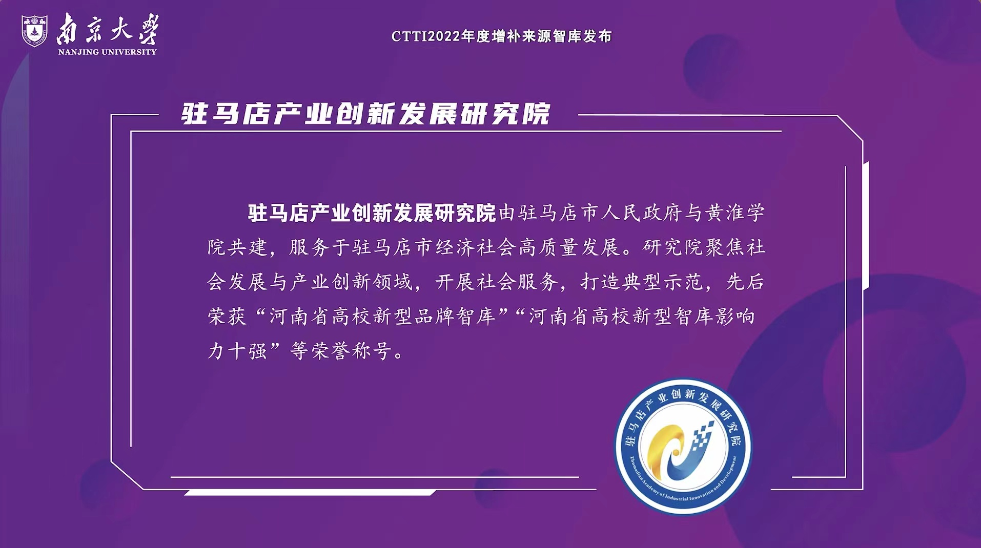 12月17日,由南京大学、江苏省社会科学院主办,南京大学中国智库研究与评价中心承办的“2022新型智库治理论坛”在南京召开,来自全国智库界、思想理论界专家和智库负责人等700余人参加线上线下会议。本届论坛以“学习贯彻党的二十大精神,提升新型智库咨政服务能力”为主题,发布了2022年中国智库索引(CTTI)来源智库增补名单。金年会app手机版在线登录产业创新发展研究院应邀参加会议并成功入选中国智库索引(CTTI)来源智库,成为此次入选的唯一一家地方高校智库,这标志着金年会app手机版在线登录智库建设实现了由省内知名高校新型智库到国内主流智库的新突破。