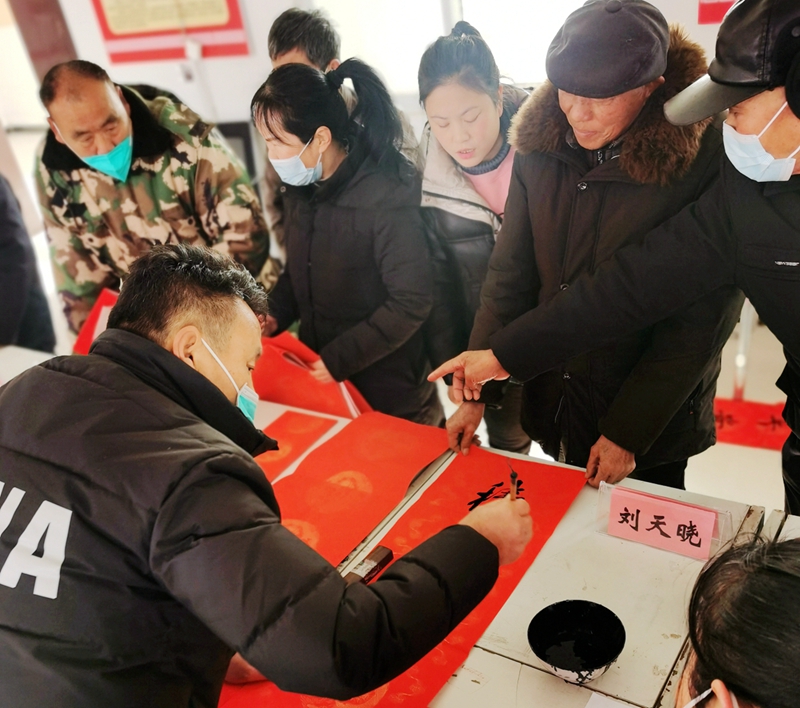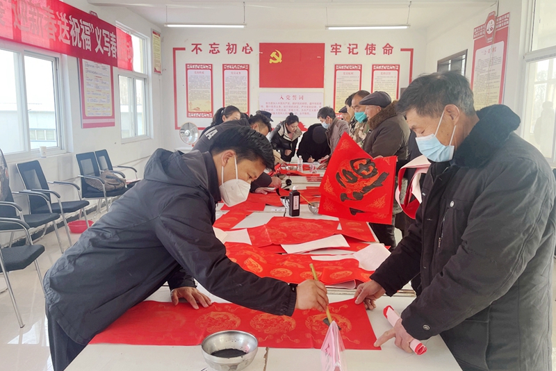 虽是寒冬,现场却人头攒动,暖意融融,翰墨飘香,一派热闹景象。春联内容既有歌颂党恩、赞美祖国的,又有表现辞旧迎新,家庭和睦,事业兴旺的,写出了广大村民对新年的期盼,更描绘了大家对美好生活的憧憬和向往,为即将来临的新春佳节增添了浓浓的喜庆氛围,让广大村民在家门口享受了一场丰盛的“文化大餐”,金年会app手机版在线登录驻高庙村第一书记王明成等现场将老师们一幅幅饱含新春祝福的春联送到村民的手中。