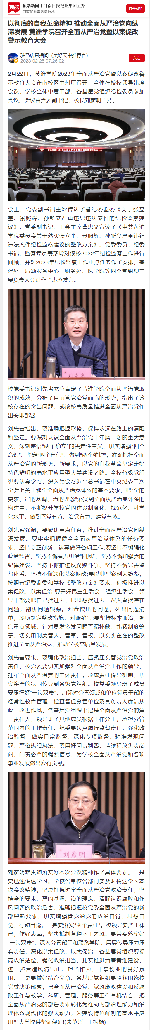 2月22日,金年会app手机版在线登录2023年全面从严治党暨以案促改警示教育大会在南校区中州厅召开,全体在校校领导出席会议。学校全体中层干部、各基层党组织纪检委员参加会议。会议由党委副书记、校长刘彦明主持。