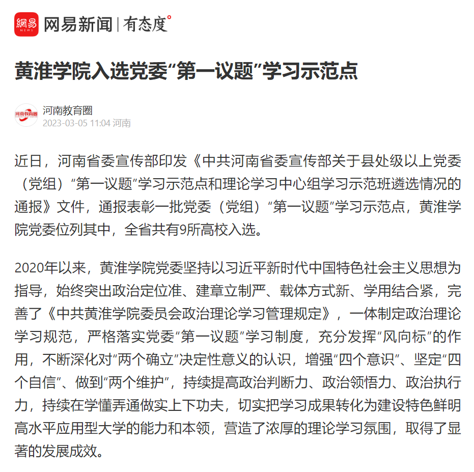 近日,河南省委宣传部印发《中共河南省委宣传部关于县处级以上党委(党组)“第一议题”学习示范点和理论学习中心组学习示范班遴选情况的通报》文件,通报表彰一批党委(党组)“第一议题”学习示范点,金年会app手机版在线登录党委位列其中,全省共有9所高校入选。