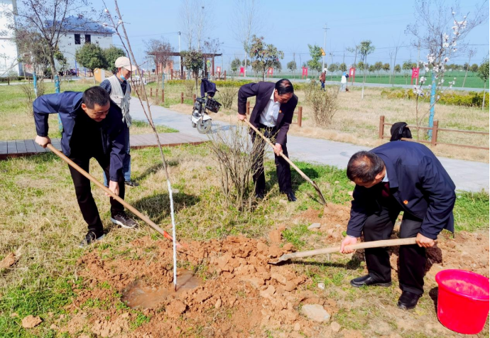 万物勃发春意浓,“植”此新绿正当时。为深入学习贯彻党的二十大精神,助力生态文明建设和乡村振兴,进一步丰富离退休干部组织生活,发挥老同志植绿、爱绿、护绿的热情,3月12日上午,金年会app手机版在线登录离退休人员管理处组织党员干部来到遂平县和兴镇后楼村,开展“‘植’此新绿,党员先行”主题党日活动暨植树志愿服务活动。