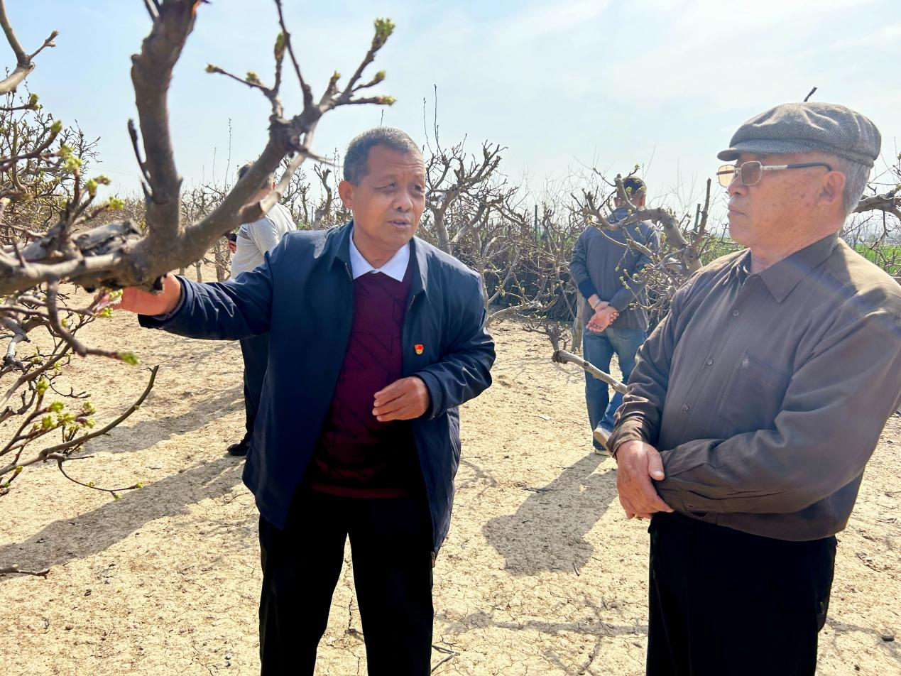 植树活动结束后,党员们又来到后楼村梨树种植园,第三支部书记、高级工程师杨留成,随果农一同实地考察,紧密围绕春季果园管理技术,现场讲解梨树春季修剪、病虫害防治等理论知识,敲重点、讲关键,现场解答种植户的疑难困惑。