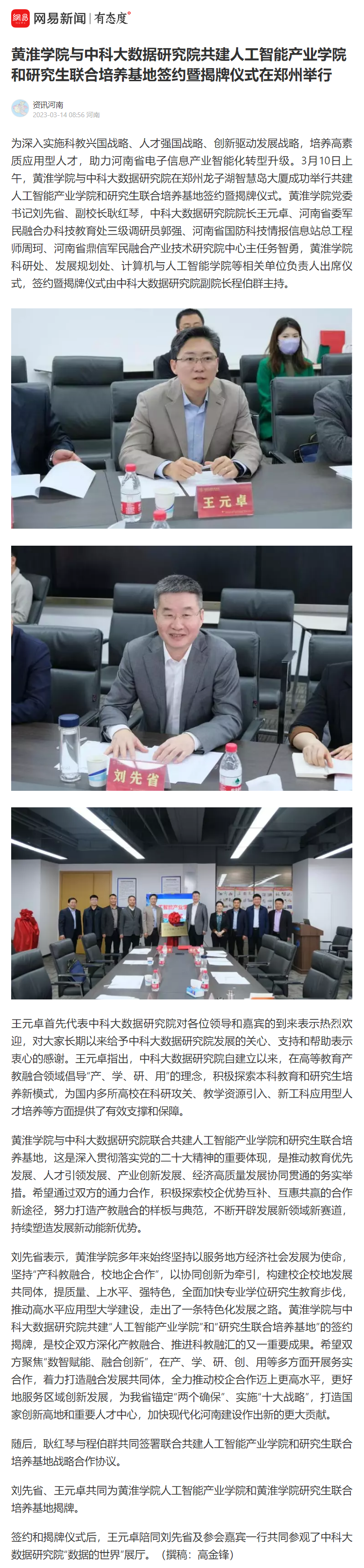 金年会app手机版在线登录与中科大数据研究院联合共建人工智能产业学院和研究生联合培养基地,这是深入贯彻落实党的二十大精神的重要体现,是推动教育优先发展、人才引领发展、产业创新发展、经济高质量发展协同贯通的务实举措。希望通过双方的通力合作,积极探索校企优势互补、互惠共赢的合作新途径,努力打造产教融合的样板与典范,不断开辟发展新领域新赛道,持续塑造发展新动能新优势。